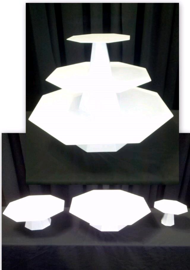 * Please call us with any questions about our octagon cupcake stand 3 pc white rentals in Omaha NE and Western Iowa.